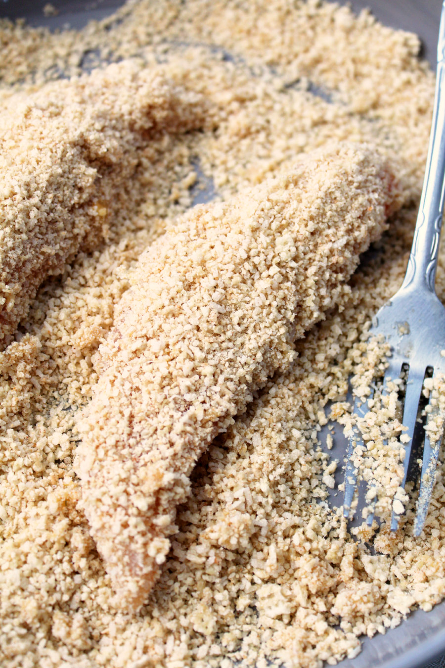 - 2 cups Rice Chex ground into Panko-like consistency in food processor