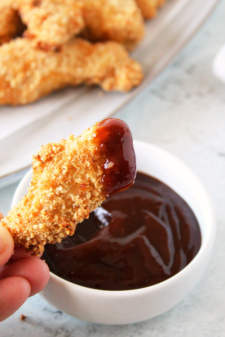 These chicken tenders are quick to prepare and are ready in a flash when cooked in the air fryer! It's an easy weeknight dinner that's fun to eat and best served with a sauce or two for dipping!