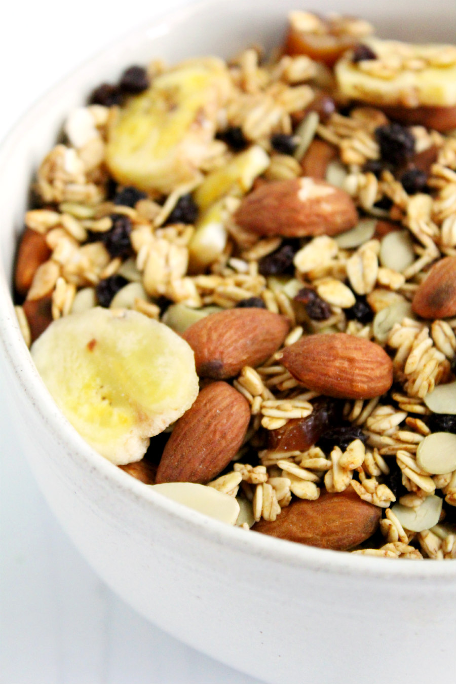 This trail mix is made with ingredients you can feel good about snacking on! Go one step healthier by looking for unsweetened dried fruit to add to this mix! It's a sweet, little snack that's full of great banana flavor!