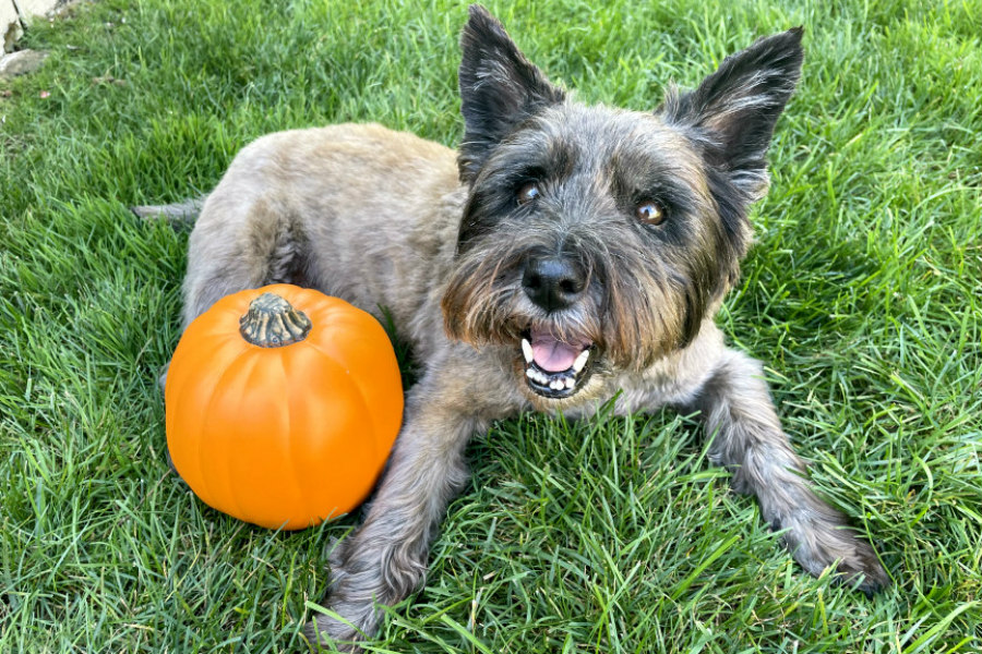 I took the inspiration from this project and decided that I would create a paw print pumpkin instead. I grabbed a 6 inch craft pumpkin and black matte acrylic paint from the craft store (non-toxic and a safe brand for pets). I also made sure I had some pet cleaning wipes on hand to immediately clean up Hunter's paws after making this pumpkin.