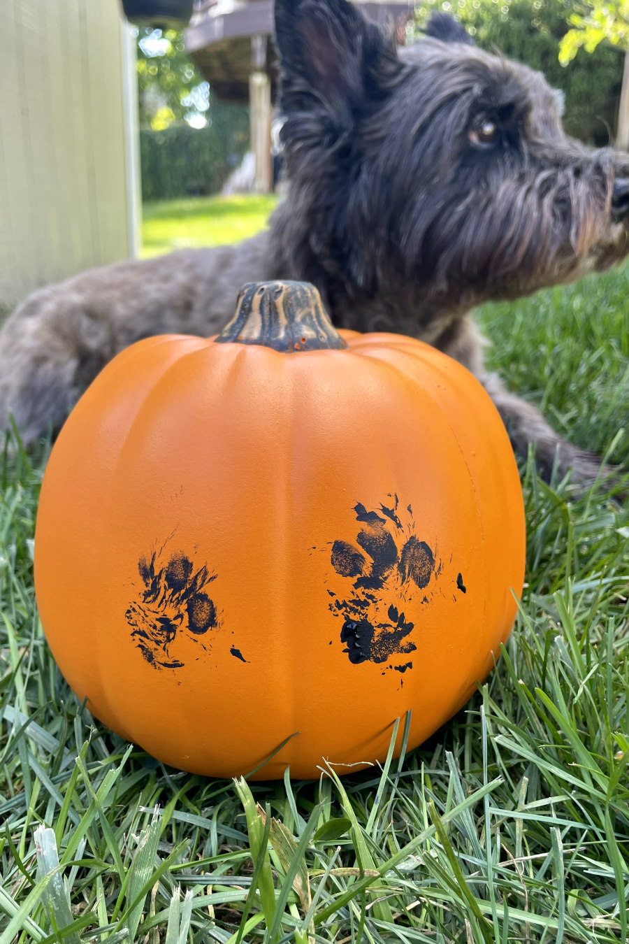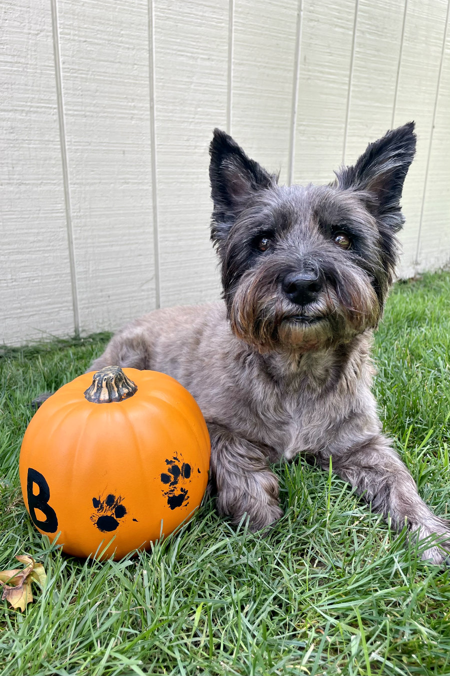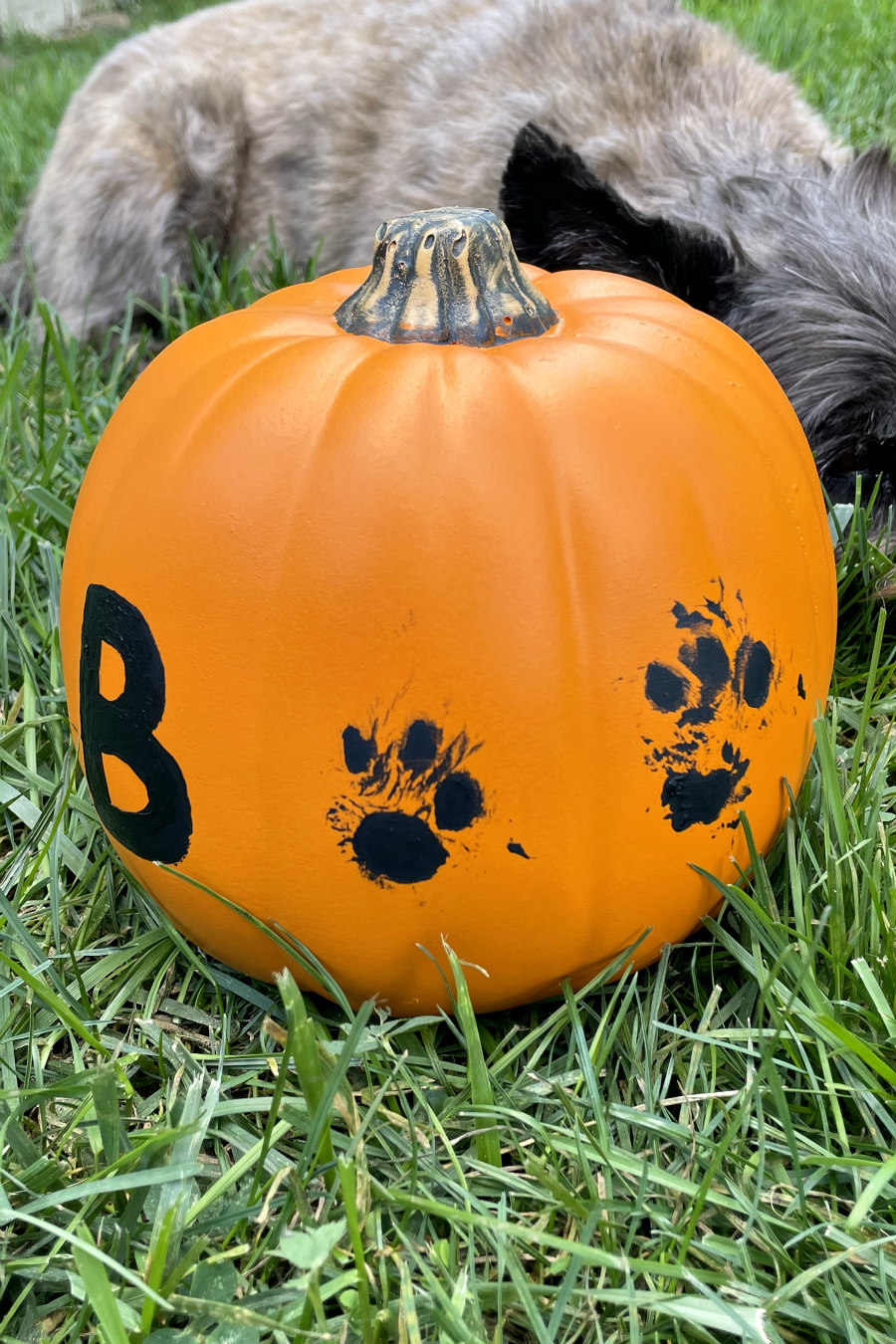 While the original project was adorable, I just felt that a pumpkin would be a way better way to let Hunter join in on the Halloween fun! This DIY makes a cute keepsake that can easily be displayed year after year! Plus, the "BOO" made out of paw prints adds a really cute touch for spooky season.