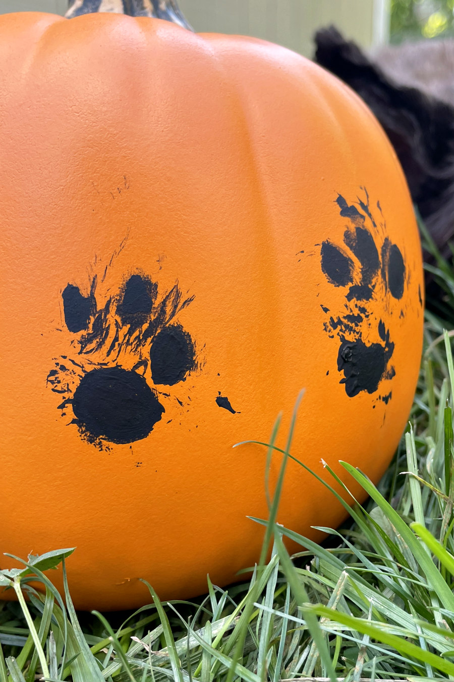 Now, add a some non-toxic black acrylic paint to one of their paws and gently press it onto the pumpkin. If you didn't get it right on the first try, you could use a wet paper towel to wipe off the paint and try again.