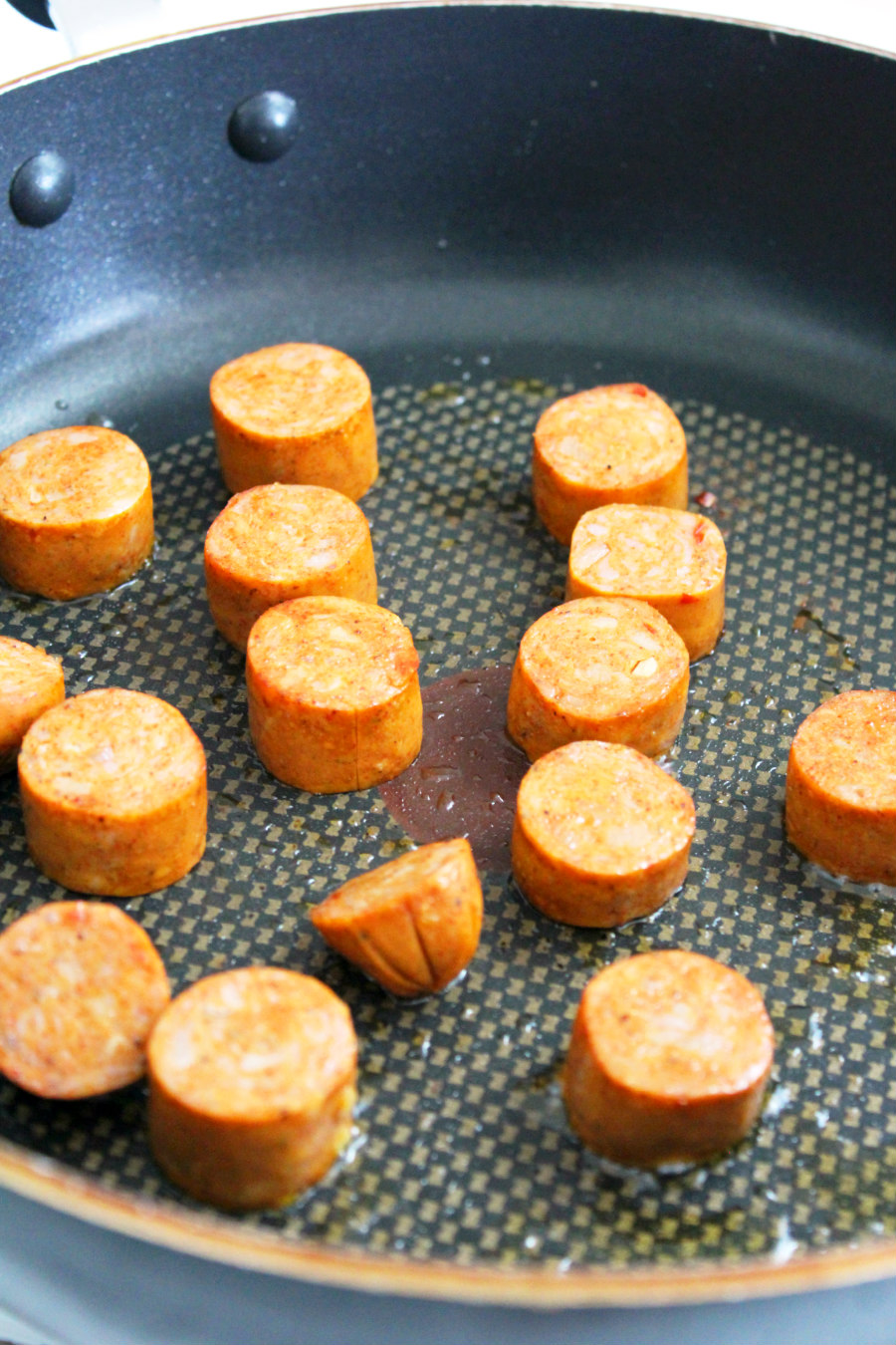 - Heat oil in a skillet over medium-high heat. Sear the sausage for 2-3 minutes on each side. Remove from skillet.