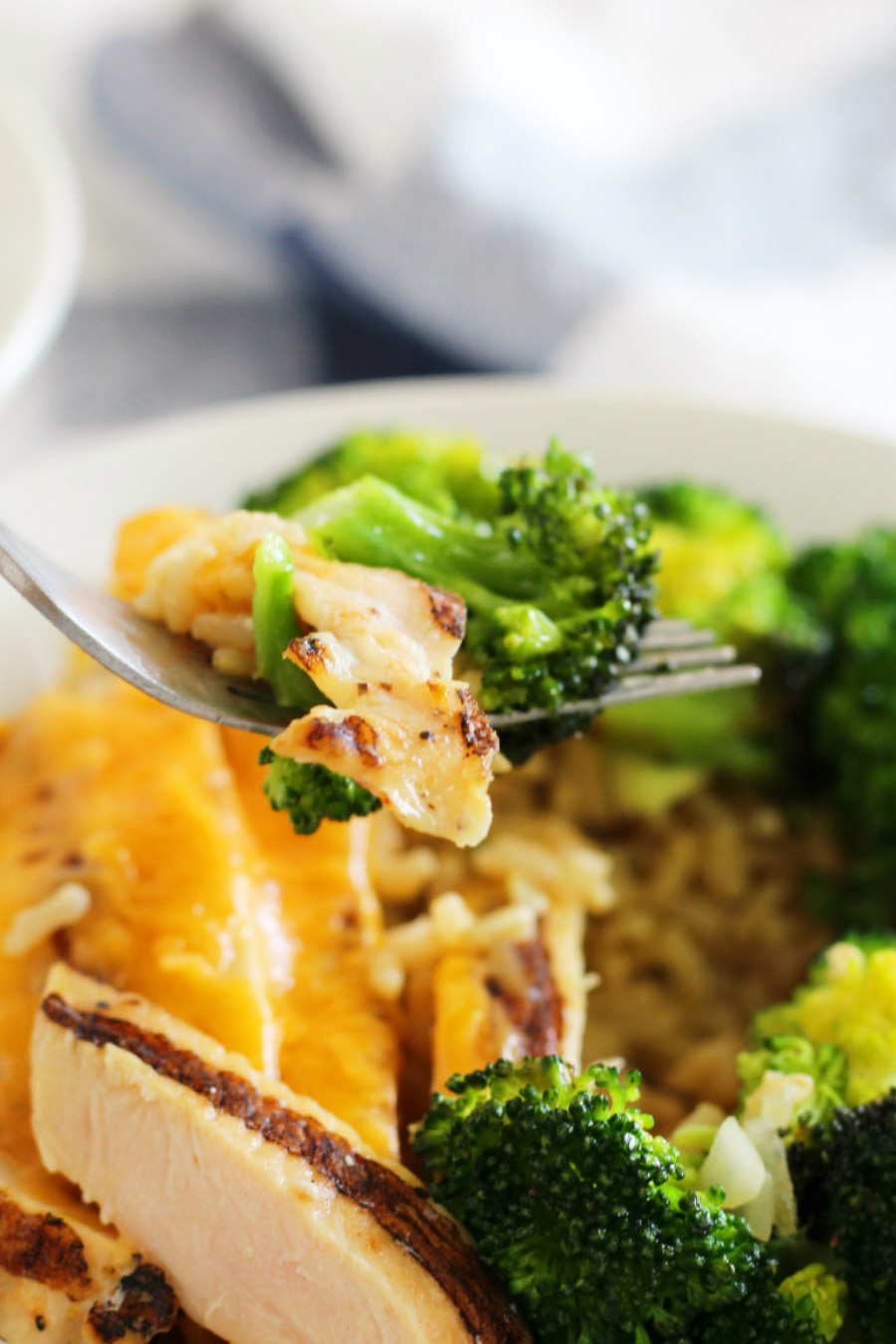 This Cheesy Chicken & Broccoli Rice Bowl is a quick and easy lunch or a simple dish to make ahead of time for meal prepping! Use ingredients from Hungryroot for even easier prep!