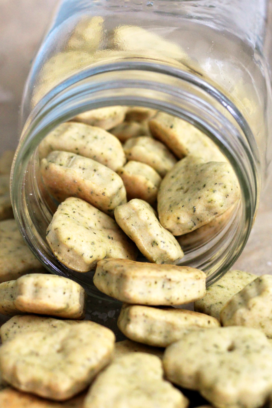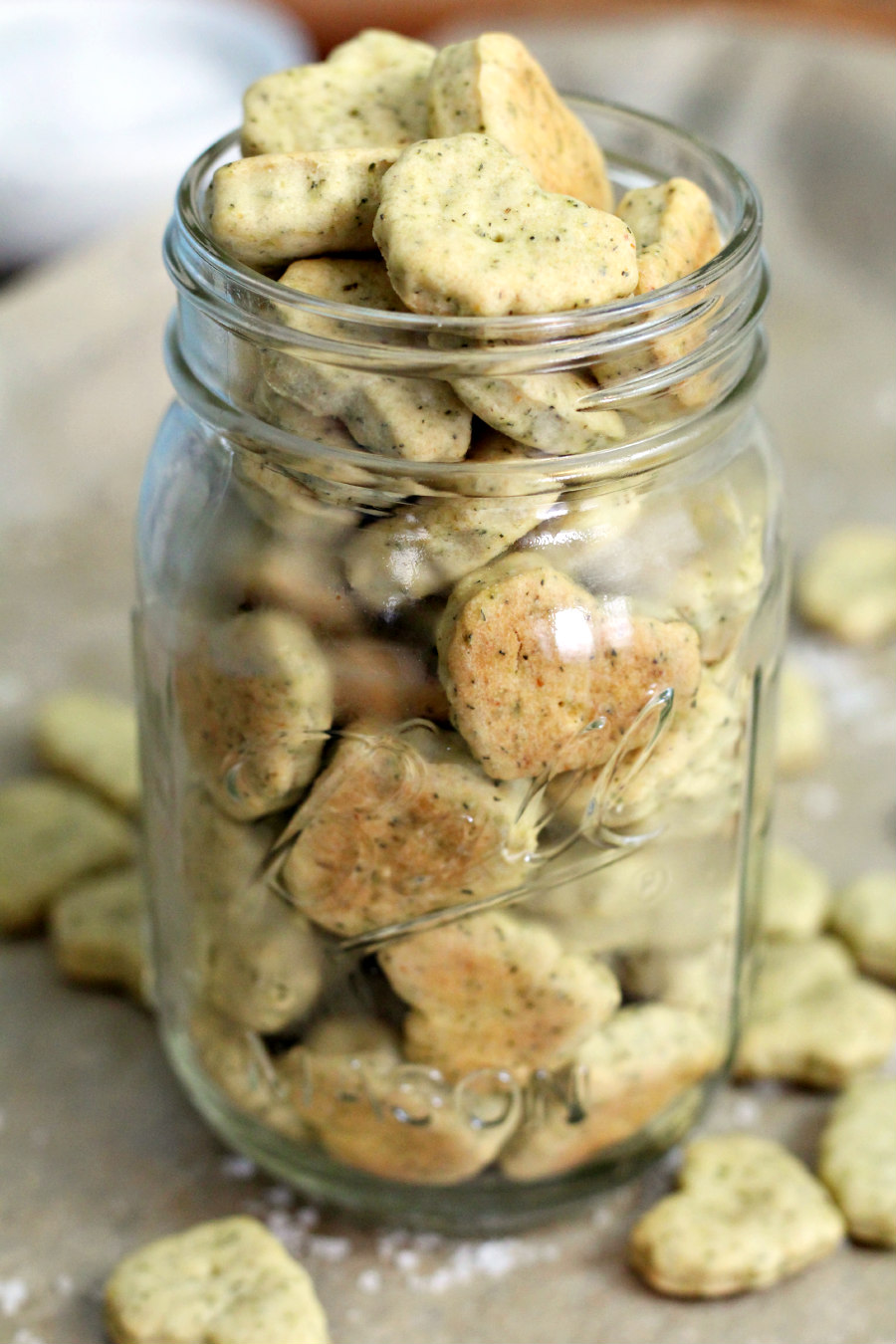 Instead off adding cheese to the dough, I used nutritional yeast for cheesy flavor and added benefits. Then, I added a tasty combination of garlic powder, onion powder, salt, and dill. It was the perfect flavor combo for a cracker. I cut the dough with a cute mini heart cookie cutter and baked them just until they were golden brown. They turned out so good that I couldn't help but steal a handful right off of the hot baking sheet!
