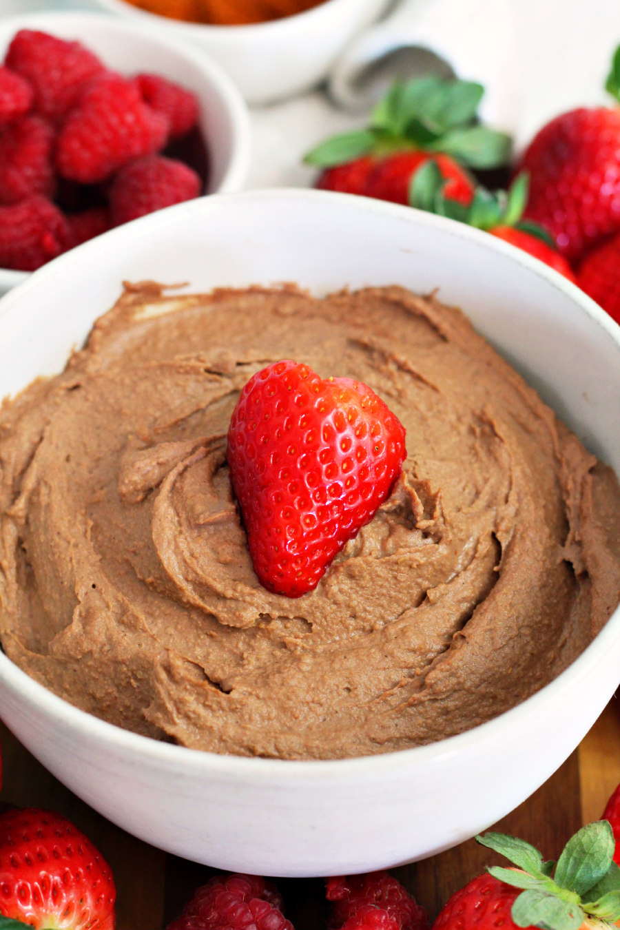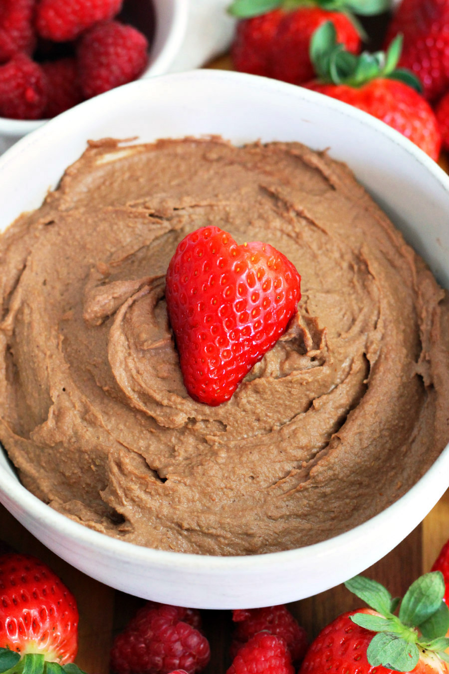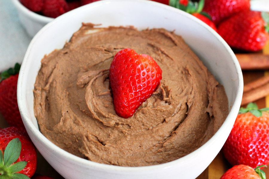 This Chili Chocolate Hummus is creamy and chocolaty with the perfect balance of sweetness and spice. It's a fun, better-for-you Valentine's Day treat that's easy to make and delicious with fresh fruit.