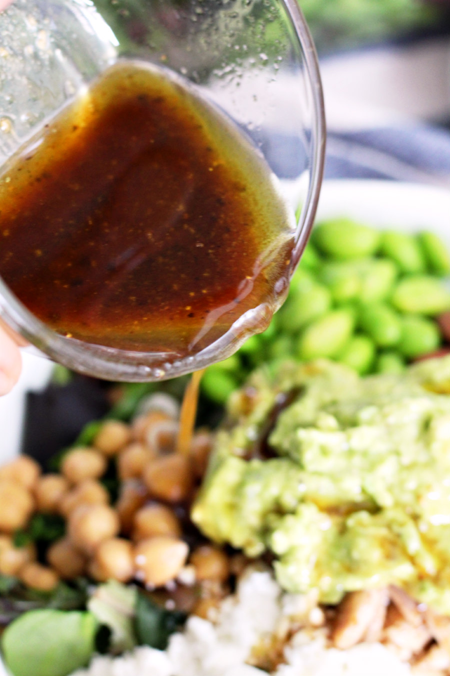 • In a small bowl, whisk balsamic vinegar, olive oil, Dijon mustard, honey, salt and pepper together.