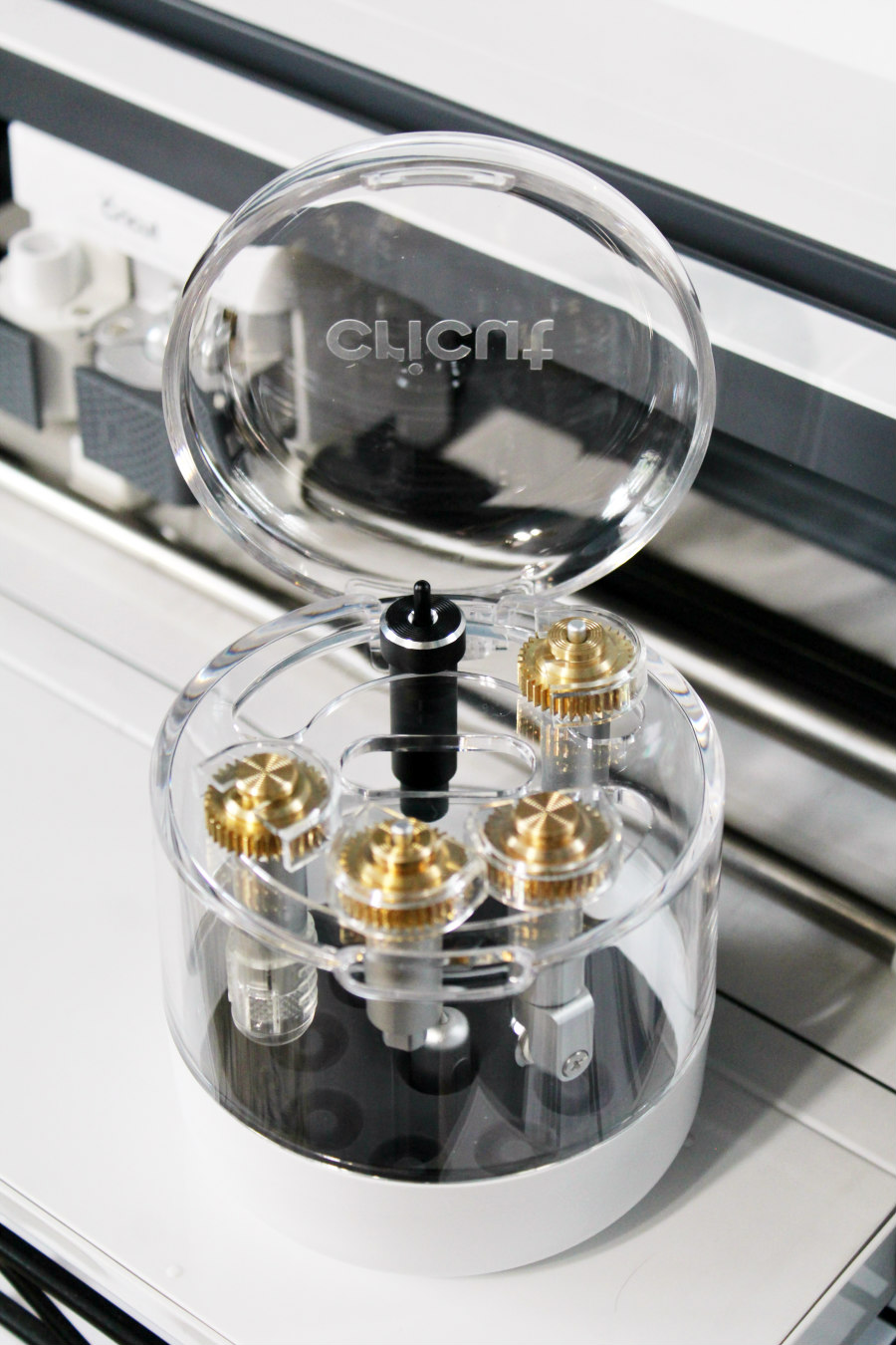 It also has an adaptive tool system that allows you to easily switch between pens and different tools. The gears that you see on top of the cutting tools allow them to move in every direction possible for precise, clean cuts! You can even buy tools to engrave, deboss, score, and more! Seriously – once you buy one tool, you’ll want to keep adding to your collection!