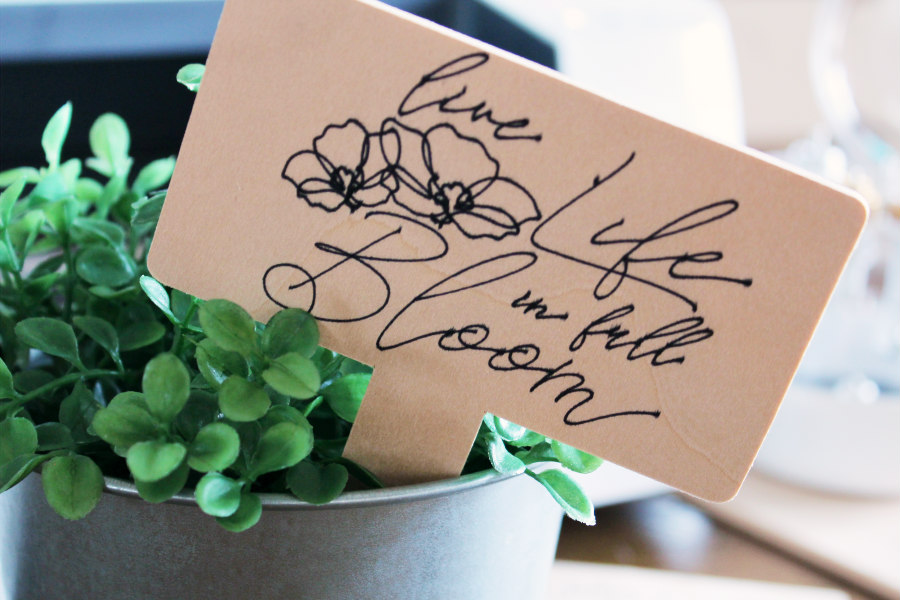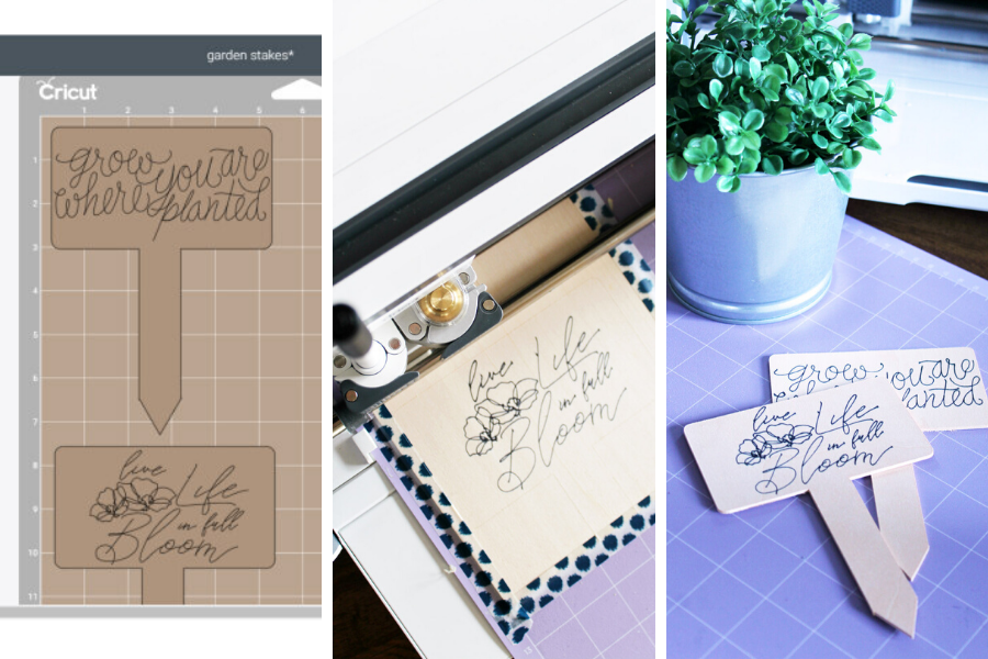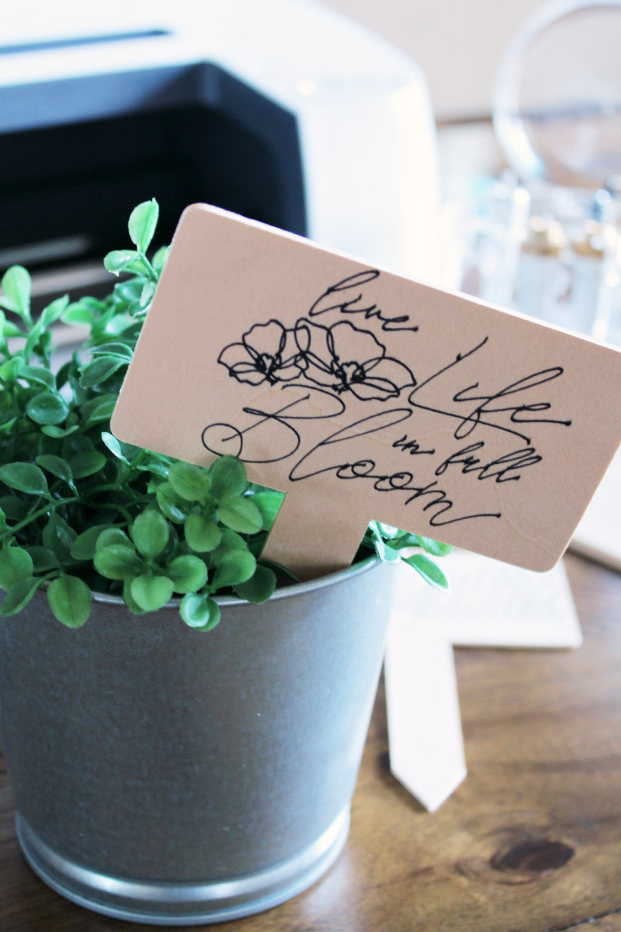 These stakes took no time to make! First, the quotes were drawn onto them with the pen and then cut with the knife blade. If you want to easily make your own, just open the garden stake project I created in Design Space and follow the steps to make this simple Cricut craft!