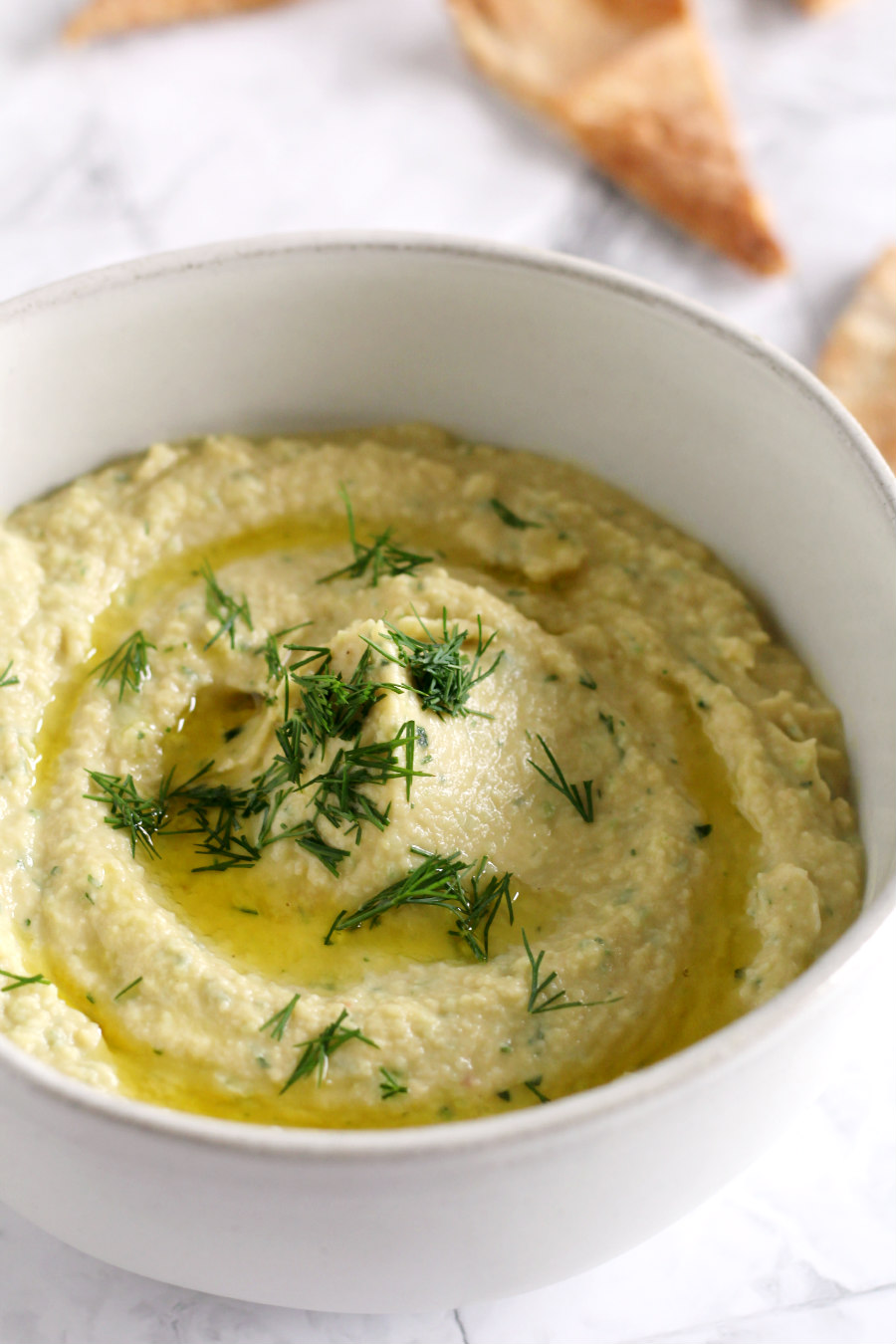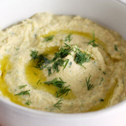 - Spoon the hummus into a bowl, drizzle it with a little olive oil, and top with chopped fresh dill, if desired.