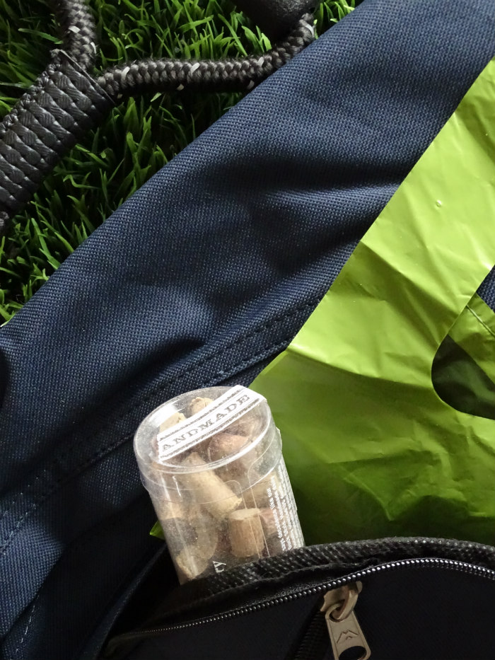 First thing’s first – you’re going to need something to carry everything in. If you like to walk long distances like we do, get yourself a sturdy backpack or sling bag. It’ll make holding your dog walking essentials that much easier to carry with you while you’re walking or running (no more jangling pockets!).