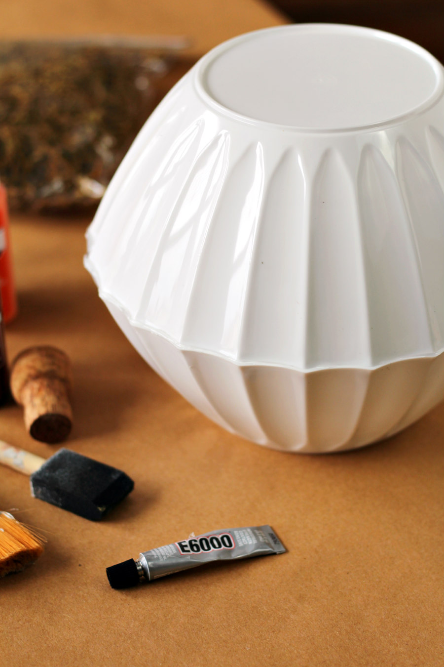- Glue the wine cork onto the top of the bowl to create a stem.