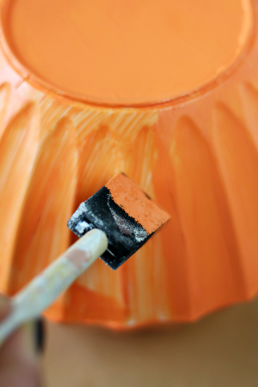 - Once glue is dry, paint bowls orange (or desired color). Allow paint to dry between coats.