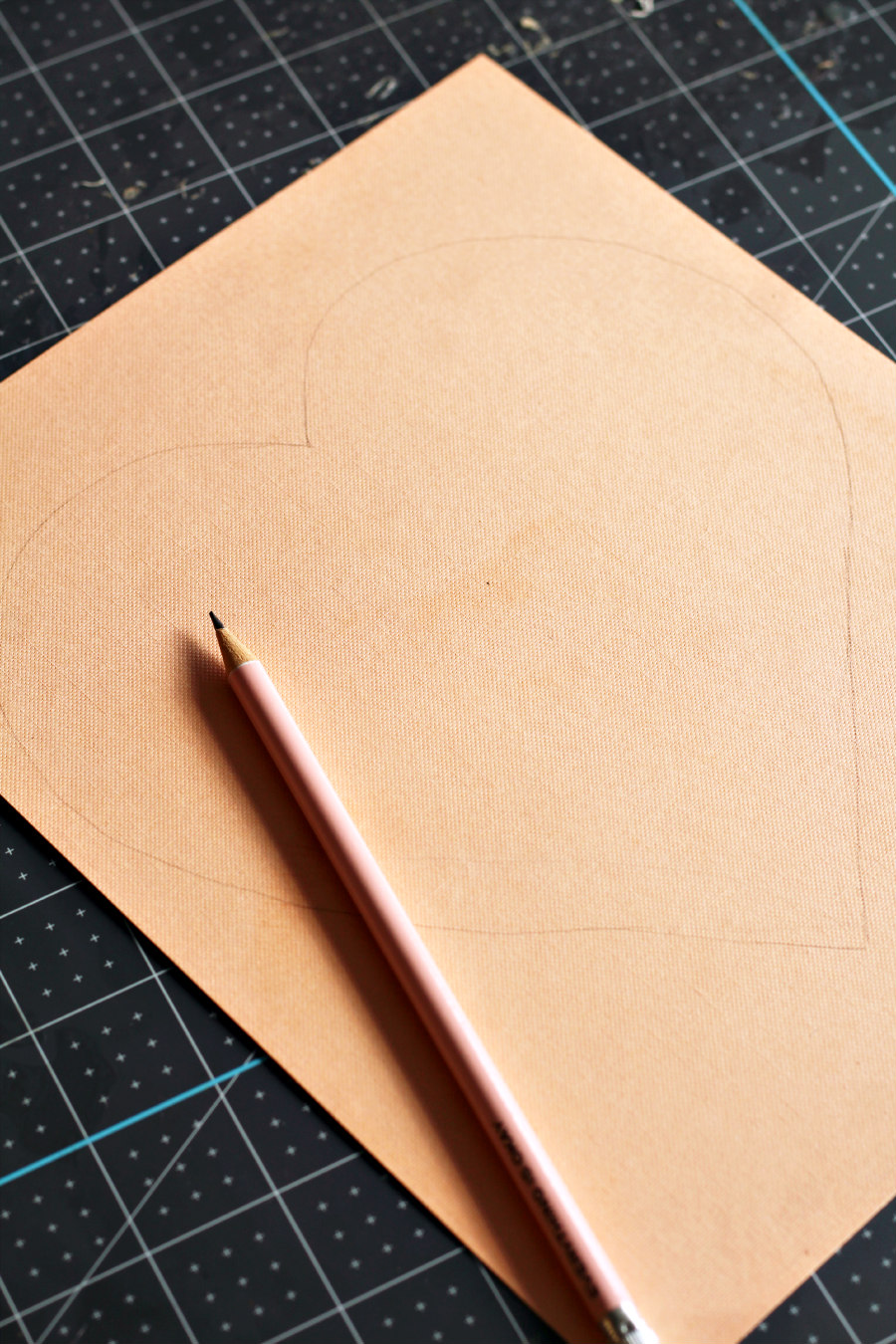 Then, use a pencil to draw a simple heart shape onto the cardstock. It doesn't need to be perfectly symmetrical. We're going to let this design naturally flow the whole way through.