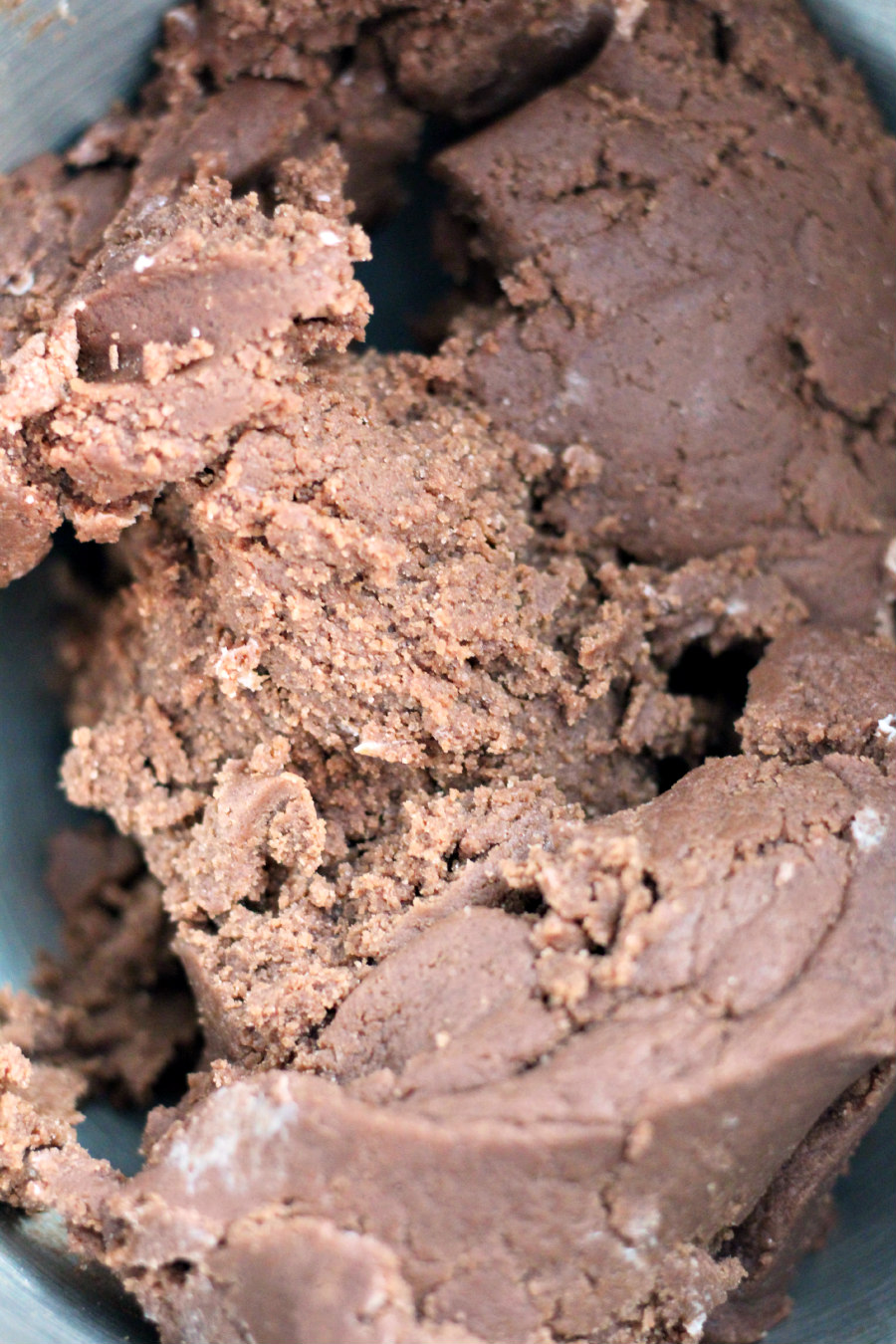 - In a medium mixing bowl, mix the sugar cookie mix, cocoa powder, and salt together. Add the butter, egg, and vanilla extract and mix until a soft dough forms.