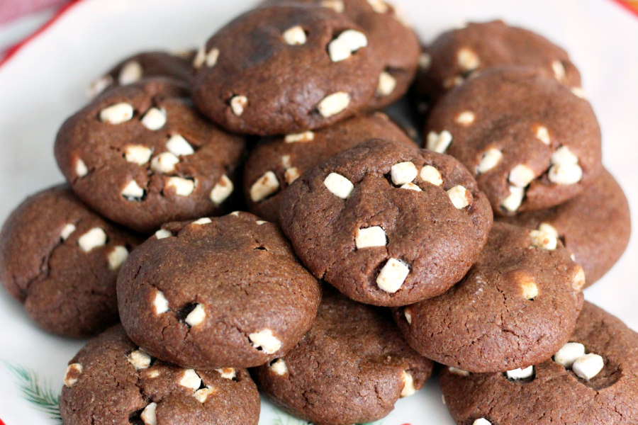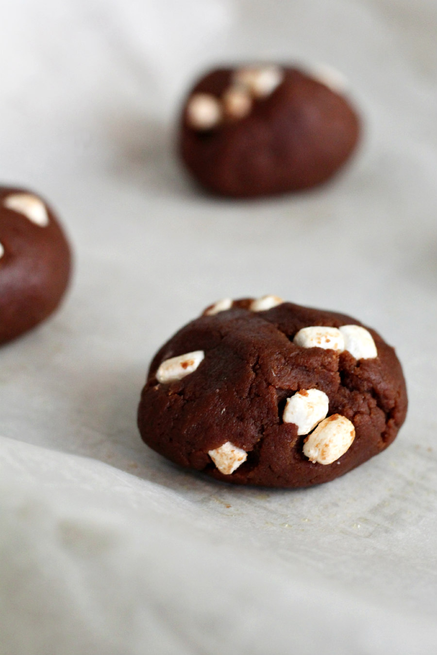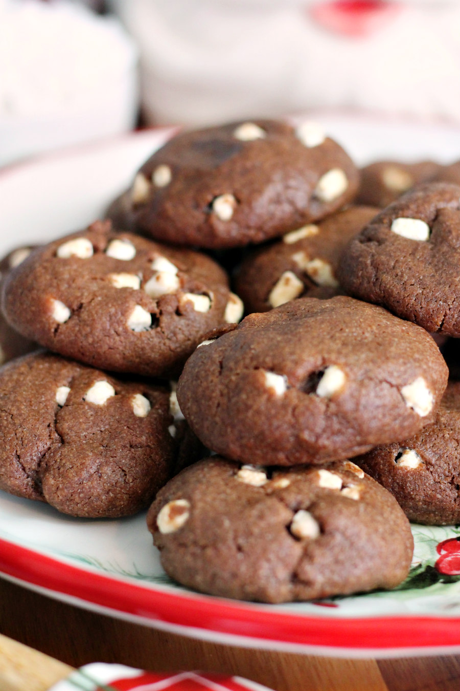 You might be wondering if you can add hot cocoa to these cookies. Yes and no. You could, but I'd suggest omitting any added sugar. Also, keep in mind that hot cocoa mix could change the texture of your cookies. So honestly, I'd stick to just using cocoa powder and other simple ingredients.