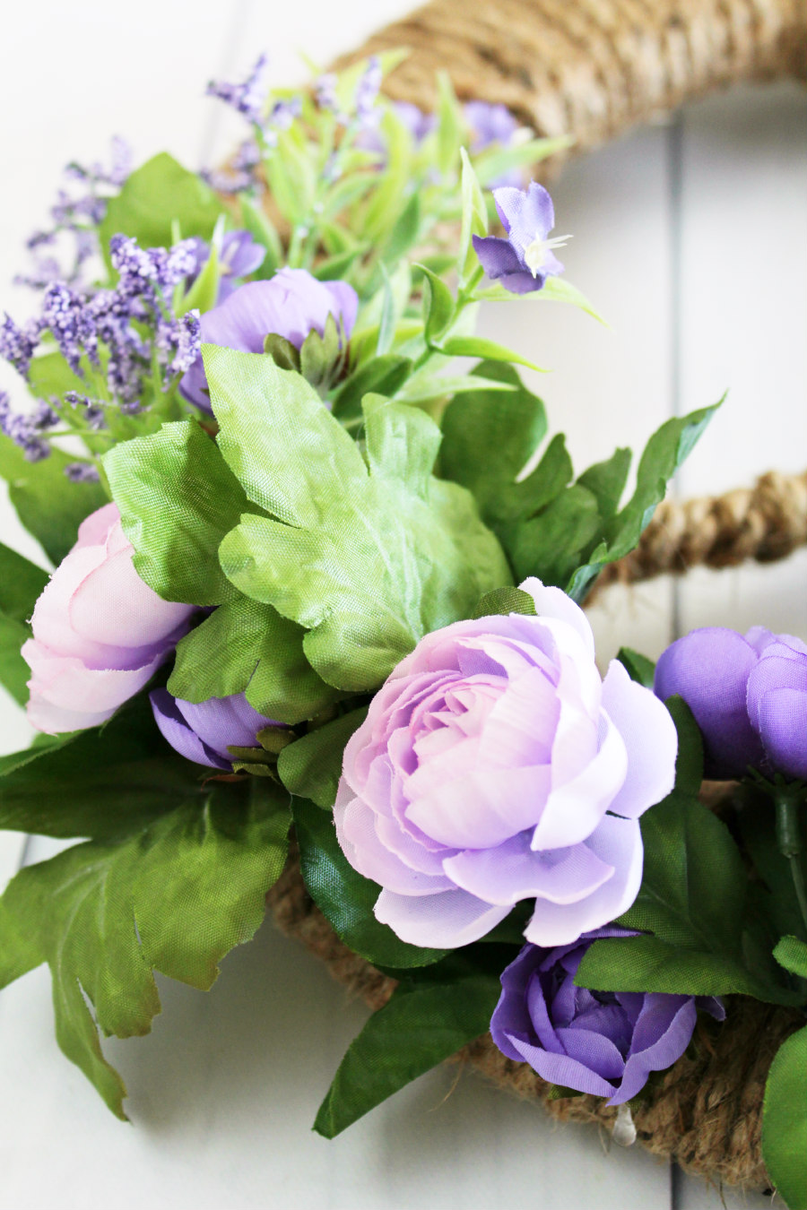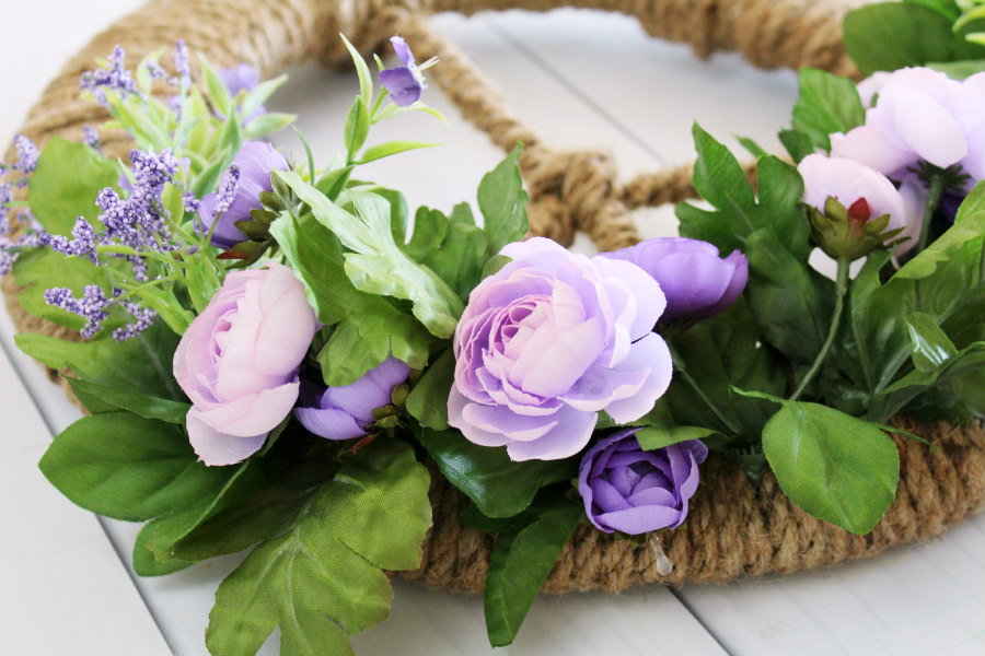 The wreath looked great on its own, but I decided to add some flowers to it. The flowers added some nice color that’ll really pop when the wreath is hung. This is a wreath I can use to welcome spring and keep up all summer long!