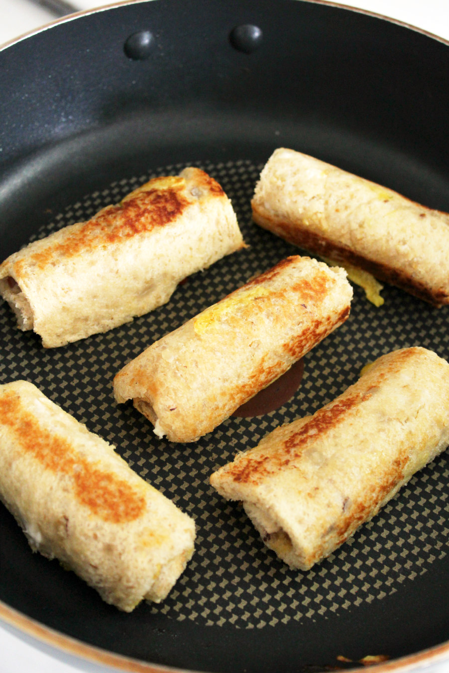 - Heat a skillet over medium heat and place the roll ups seam-side-down in the skillet.