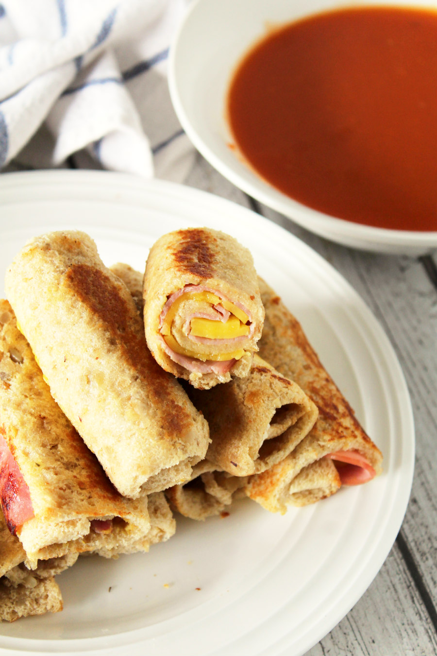 Serve the roll ups warm with a bowl of tomato soup for dipping.