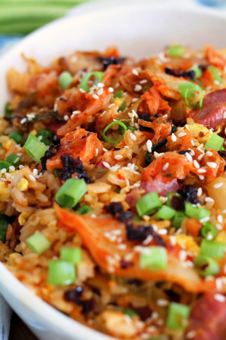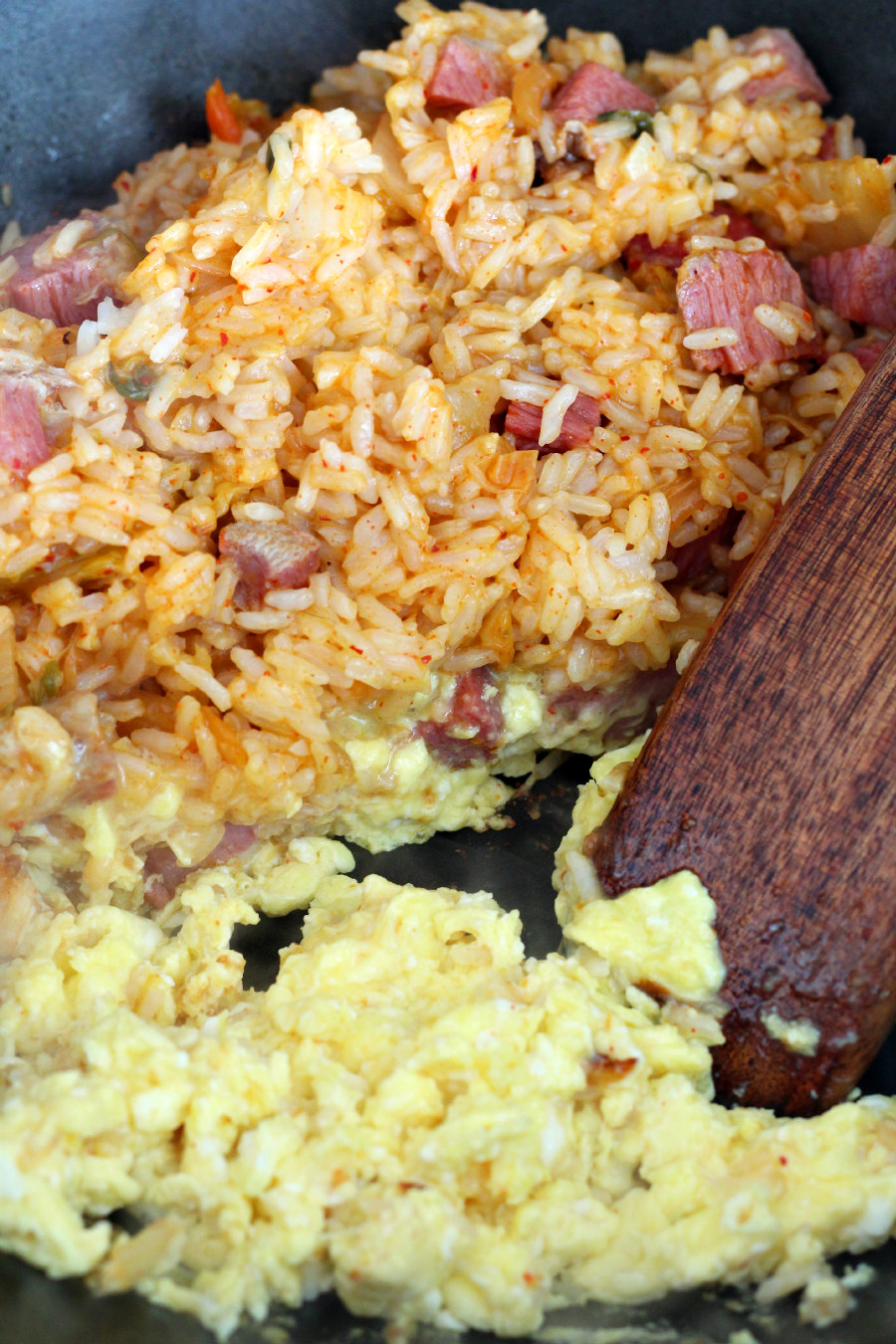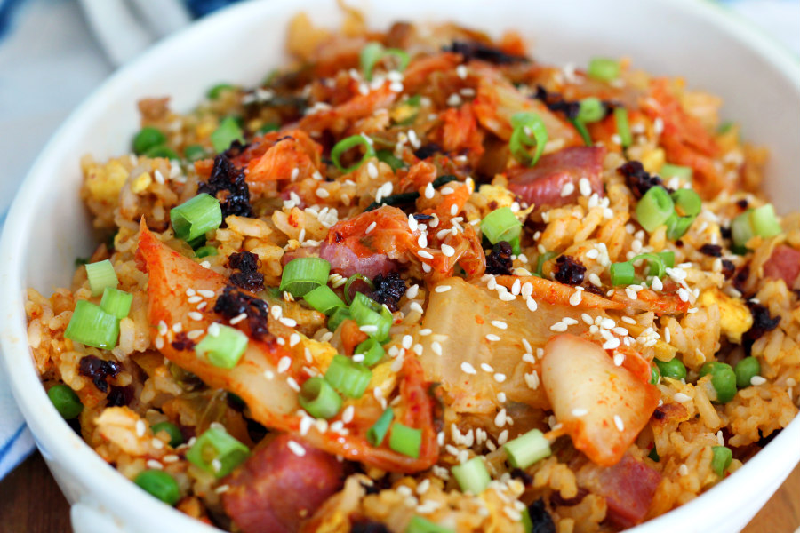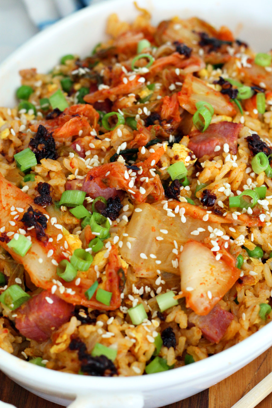 If you've never added kimchi to fried rice before, you're seriously missing out! This fermented cabbage dish is full of bold, tangy, and spicy flavors. Kimchi is typically eaten straight out of the jar as a side dish, served with savory pancakes, stirred into soups, paired with meats, and mixed into fried rice. Adding kimchi to this corned beef fried rice adds an extra dose of flavor in every bite.