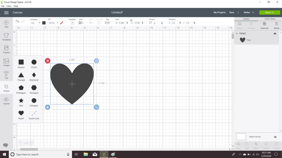 - Open the Layered Engraved Heart Necklace Project in Design Space. Resize the heart shapes to your liking.