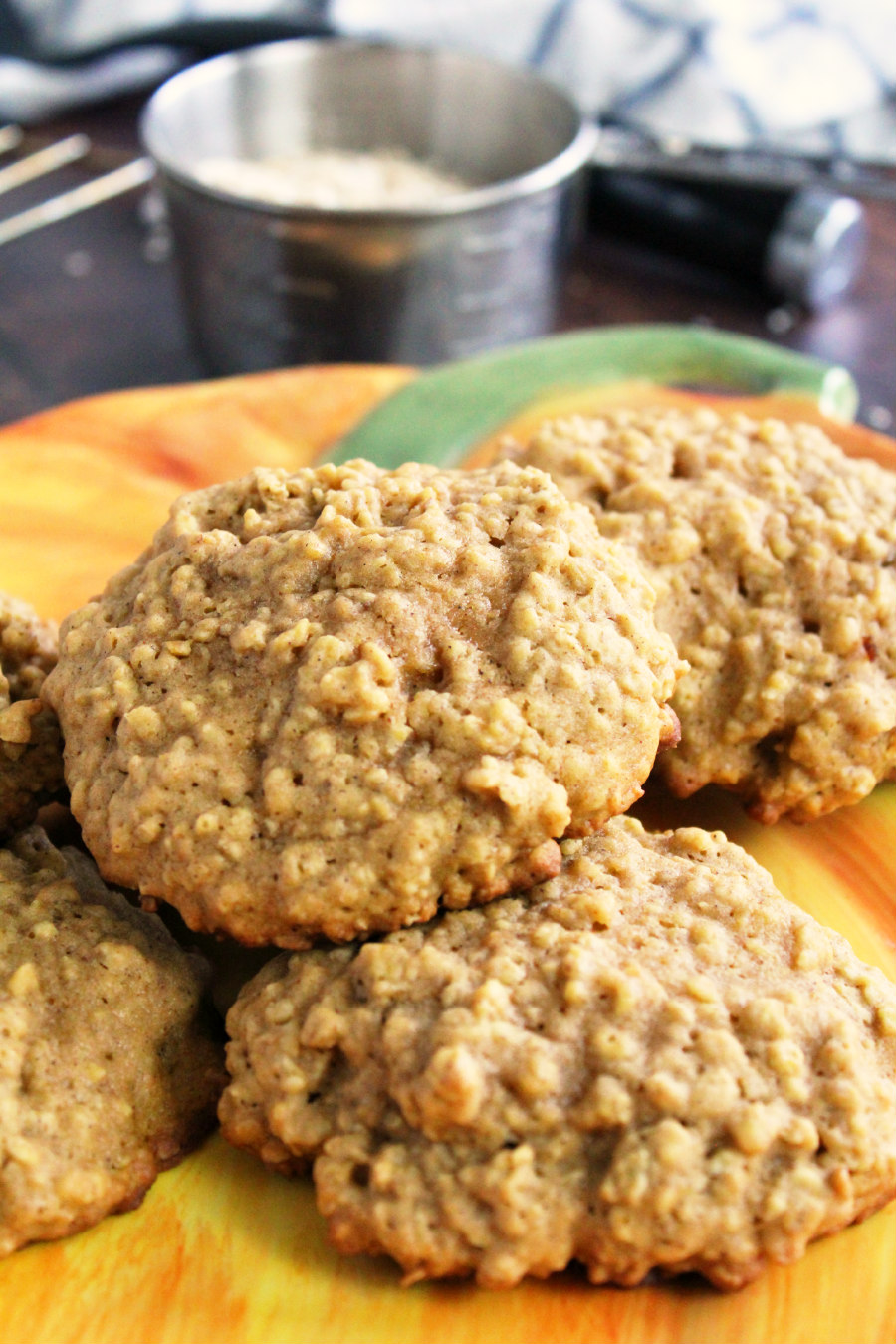 Oatmeal cookies are classic. But I wanted to put a seasonal pumpkin twist on them, so I added pumpkin puree and pumpkin pie spice to this oatmeal cookie recipe.  The result is a soft and fluffy, sweet and pumpkiny cookie that's so, so good with a cold glass of milk!