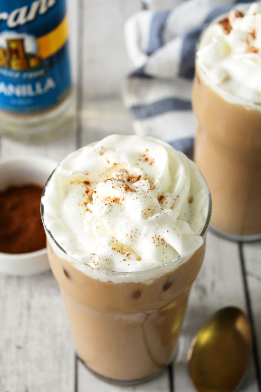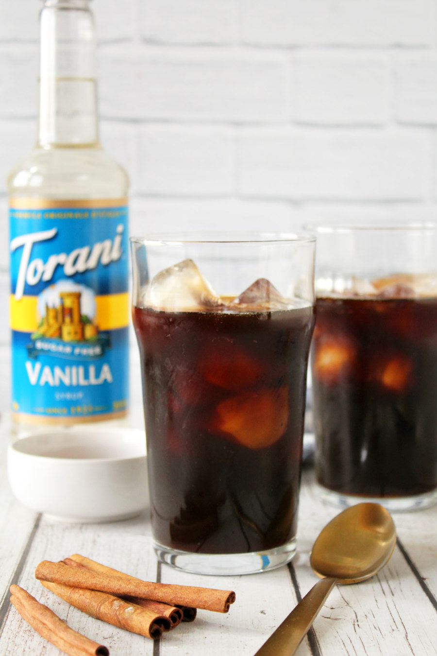 Using Torani Sugar Free Vanilla Syrup, I was able to flavor this sweet cinnamon iced coffee without the sugar! If you're not opposed to drinking iced coffee during the winter, it's the perfect afternoon pick-me-up that's easy to make at home! It could even be made ahead of time!