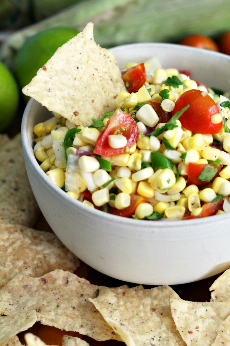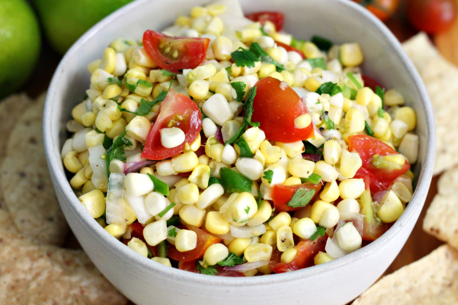 Seasonal summertime flavors come together in this delicious Summery Corn and Tomato Salsa recipe. It's made with fresh corn kernels, cherry tomatoes, red onion, jalapeño, fresh cilantro, and a lime juice mixture. It's perfect for summer snacking!