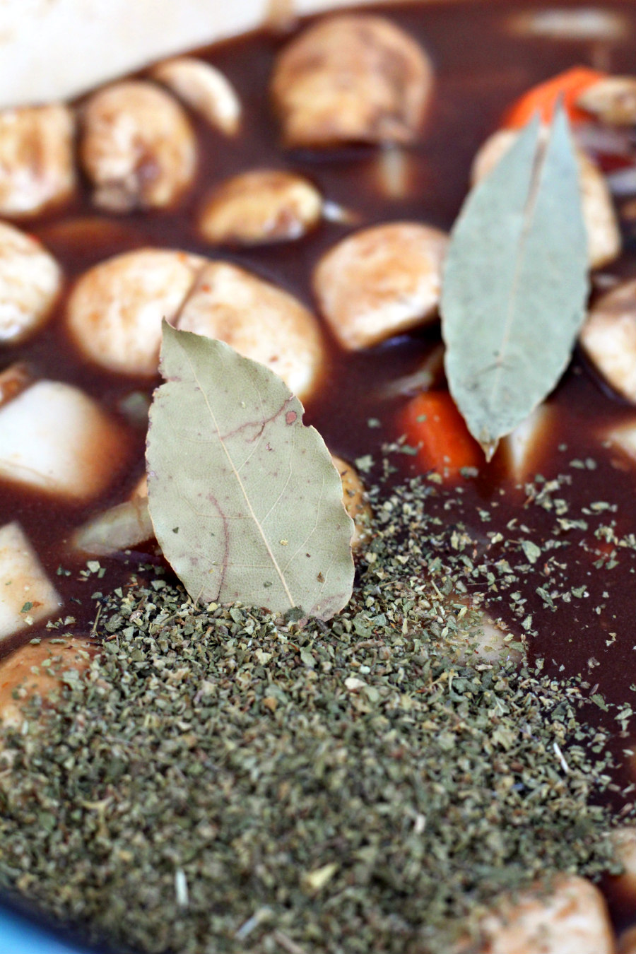 Add the balsamic vinegar, Worcestershire sauce, tomato paste, beef broth, and seasonings. The vinegar and Worcestershire sauce will help tenderize the beef, plus adds some good flavor.