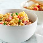 Take your taste buds away to a tropical paradise with this sweet and savory Cauliflower Hawaiian Fried Rice made with pineapple, ham, and veggies!