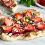 This Chocolate Hazelnut & Strawberry Grilled Dessert Pizza is topped with chocolate hazelnut spread, fresh strawberries, chopped hazelnuts, and mint! It’s sure to become your new favorite summertime dessert!
