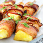 These Easy Bacon Wrapped Pineapple Spears are made with just three ingredients! They’re a deliciously sweet and slightly salty appetizer, snack, or breakfast side dish.