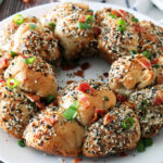 This Everything Bagel Monkey Bread is a fun, pull-apart breakfast made with buttery crescent roll dough and stuffed with cream cheese, bacon, and scallions!