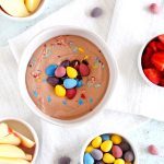 Want to indulge in Easter sweets without the guilt? Try this Healthier Chocolate Mini Egg Dip recipe! It’s made with better-for-you ingredients and a small handful of chocolate mini egg candies on top! It’s a perfect dip for fruit that will satisfy your chocolate cravings!