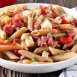 If you like a loaded Italian sub from the deli, you’ll love this Italian Sub Pasta Salad made with penne, salami, prosciutto, tomato, onion, peppadew peppers, provolone, fresh basil and oregano, and a bottle of red wine vinaigrette!