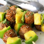 Create these delicious Quick Teriyaki Meatball Kebabs with just 4 easy ingredients – meatballs, teriyaki sauce, pineapple, and bell peppers!