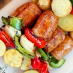 Love sausage, peppers, and onions and Italian hot dogs, but not the grease? These Sausage, Pepper, Onion, and Potato Kebabs are a fun way to enjoy those Italian flavors in a great summertime recipe!