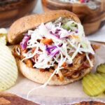 This Slow Cooker BBQ Pulled Turkey Tenderloin recipe is an easy and delicious spin on pulled pork sandwiches. It’s full of BBQ flavor and made with only two ingredients!
