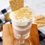 Enjoy the flavors of classic s’mores in this easy layered S’mores Greek Yogurt Parfait made with chocolate Greek yogurt, graham cracker crumbs, and marshmallow spread!