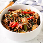 Serve immediately with a sprinkle of sesame seeds on top, if desired.